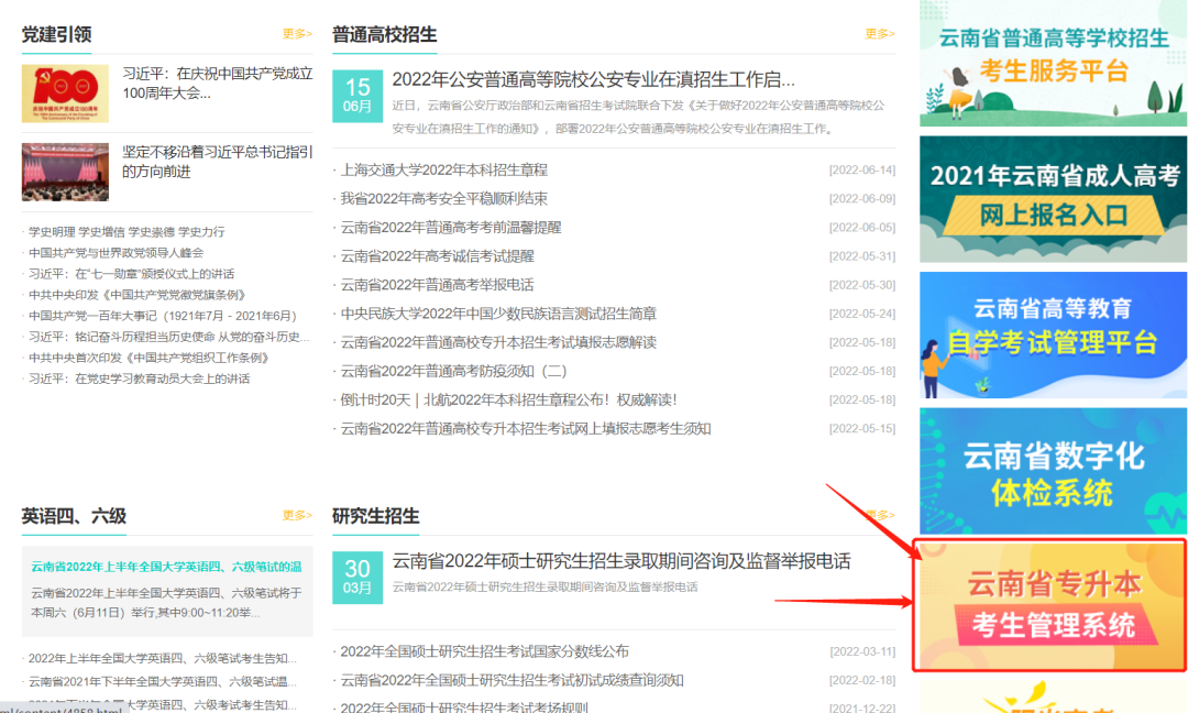 或者直接输入网址:http://zsb.ynzs.cn/pc.html,进入【云南专升本考生管理系统】